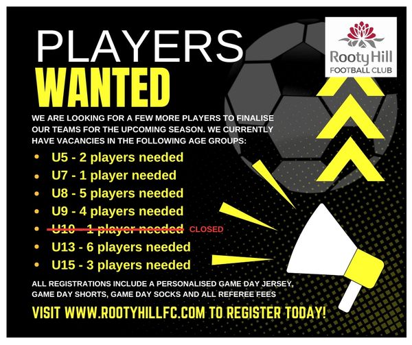 Rooty Hill FC is looking for players to fill a few final spots for the 2026 season!